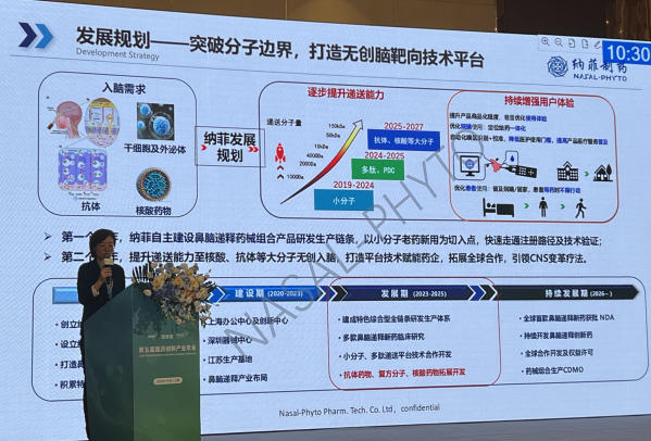 會(huì)上劉靜怡博士介紹,鼻腦遞釋技術(shù)的核心優(yōu)勢(shì),在于(一)顛覆性的遞送路徑:將直接繞過(guò)血腦屏障(BBB)、高靶向進(jìn)入腦內(nèi)發(fā)揮作用;(二)顯著的臨床效益——快速起效、降低外周副作用以及無(wú)創(chuàng)且依從性高;(三)針對(duì)常規(guī)途徑難以入腦的大分子,例如核酸、抗體藥物、神經(jīng)干細(xì)胞等,該技術(shù)路徑可實(shí)現(xiàn)無(wú)創(chuàng)腦靶向遞送,為CNS疾病治療開(kāi)啟新的時(shí)代。目前納菲已實(shí)現(xiàn)一系列突破性進(jìn)展,首款抗腦血管意外代表性管線(xiàn)NPRD003已成功獲批FDA IND(Type 1 Drug-Device Combination),即將進(jìn)入臨床階段;針對(duì)中樞病理性疼痛、精神分裂、阿爾茲海默癥等一系列CNS適應(yīng)癥,持續(xù)開(kāi)發(fā)多條小分子、大分子管線(xiàn);并且基于特色技術(shù)平臺(tái),正開(kāi)展廣泛的行業(yè)交流與合作。